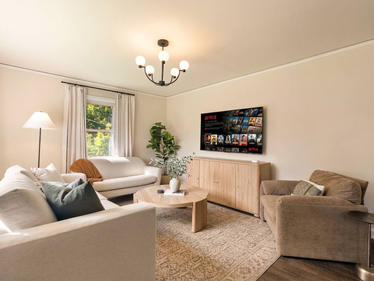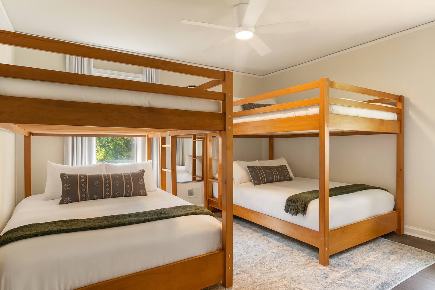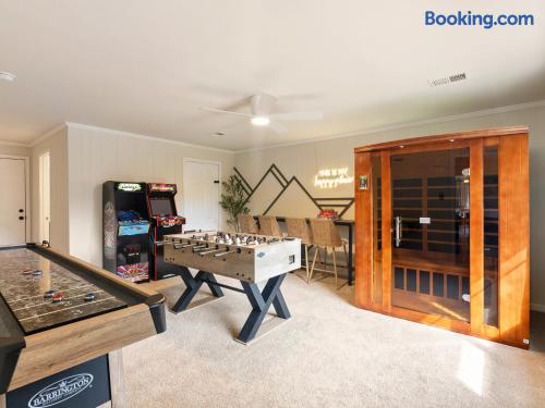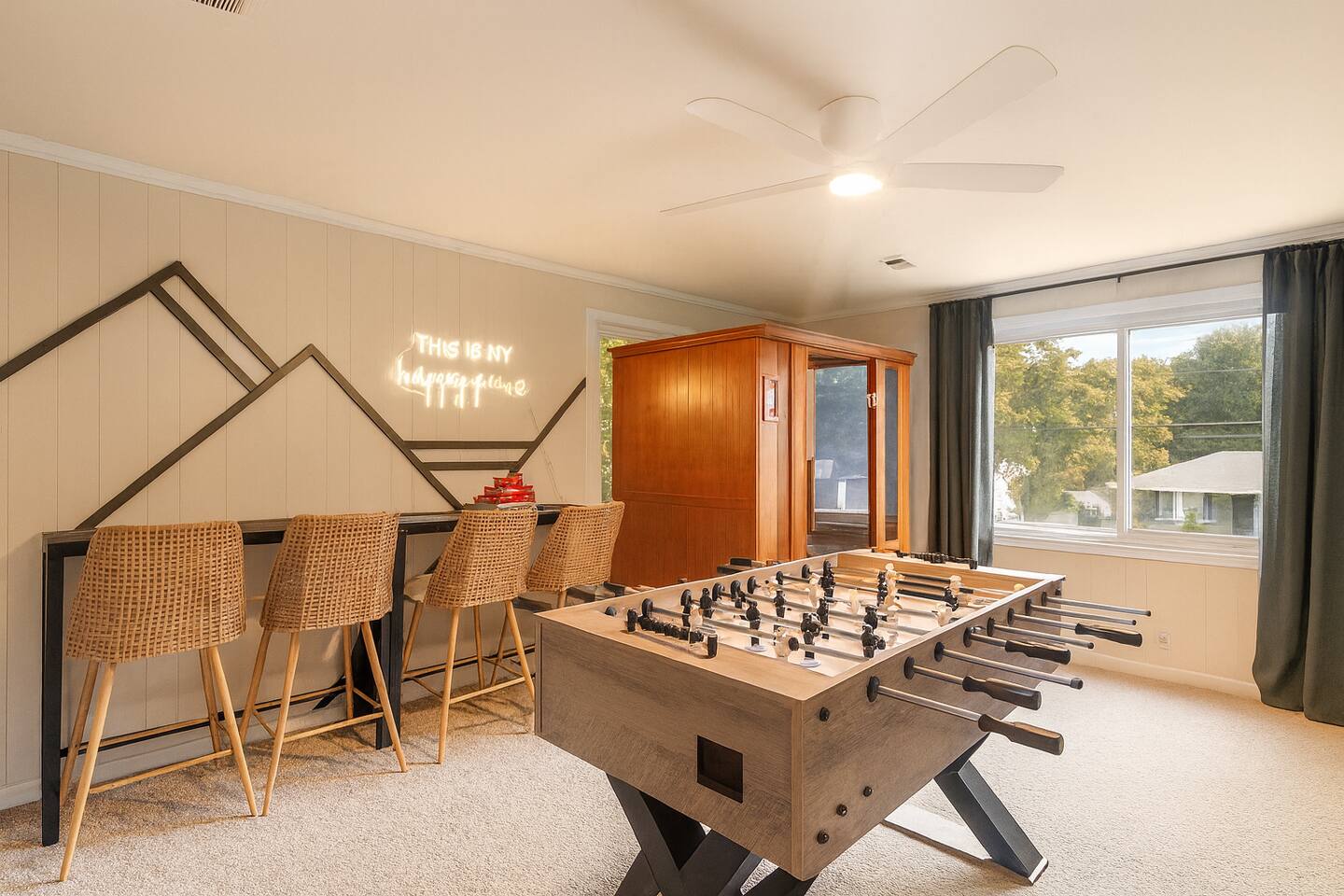 ✨ Highlights 🔥 Fire pit + string lights for s’mores and stories under the stars 🧖♀️ Private sauna & bubbling hot tub — your nightly reset 🎮 Game room with foosball, shuffleboard & arcade fun for all ages 🏋️♂️ Workout corner + yoga mats for balance and wellness 🧡 Fully stocked kitchen + coffee bar for family meals made easy 🚗 EV charger + parking for 4 vehicles 🏡 Peaceful residential street just minutes from Greenville’s favorite spots 🗺 Local Love You’re perfectly placed for adventure and ease: ☕ Taylors Mill (4 mi) – craft coffee, art studios & weekend markets 🏞 Paris Mountain State Park (5 mi) – family hikes & fall foliage 🌆 Downtown Greenville (6 mi) – restaurants, shops, the Liberty Bridge & the Swamp Rabbit Trail 🦓 Greenville Zoo (7 mi) – a favorite for the little explorers 🏞️ Caesars Head State Park in the Blue Ridge Mountains (35 mi) – the Southern tip of the Blue Ridge Mountains for family hikes and a breath of fresh air 🏢 Asheville, NC (63 mi) ⛳Golfer's Guide 🏌️The Preserve at Verdae (6 mi) – A scenic 18-hole, par-72 course by Willard Byrd, set in lush Carolina forest with hills and brooks 🏌️Paris Mountain Country Club (9 mi) – scenic foothills 🏌️Furman Golf Club (10mi) – voted #1 by the SC Golf Ratings Panel 🏌️Carolina Springs Golf Club (17 mi) – A semi‑private 18‑hole championship course open to public play 🏌️Southern Oaks Golf Course (18 mi) – the "hidden gem" We’ve thought through every detail — from plush linens and stocked coffee to a smart TV, EV charger, and family-friendly games. Ring cameras are installed at the front for peace of mind (none inside, ever). At Pinehurst Haus, it’s never just about where you stay…it’s about what you do together. Book your getaway, pack the marshmallows, and come make memories that will last long after checkout. 🛋 LIVING ROOM The living room is designed for comfort and relaxation, featuring stylish mid-century furniture and modern conveniences. Unwind on the comfortable sofa, catch up on your favorite shows on the smart TV, or enjoy some quality time with a board game or book. ✔ 1 cozy sofa that converts into a pullout bed, modern loveseat and 1 accent chair ✔ Smart TV with streaming access ✔ Large window for with serene outdoor views ✔ Board games for family fun or cozy nights in ✔ Modern wooden coffee table ✔ Ambient lighting 🕹 GAME ROOM & WORKOUT AREA: Kick back and unwind in the dedicated game room and workout area, designed for friendly competition and relaxation. ✔ Perfect for families and groups ✔ Arcade games for friendly competition ✔ Shuffle board & Foosball for friendly competition ✔ Weights ✔ Sauna ✔ Yoga mats ✔ Additional seating 🍽 KITCHEN The kitchen is fully equipped with all the essentials, making it the perfect spot to cook family meals and create lasting memories together. ✔ Oven, stove, microwave and dishwasher ✔ Refrigerator/freezer ✔ Keurig coffee maker ✔ Complimentary Keurig pods & creamer ✔ Toaster ✔ Electric kettle ✔ Stand alone ice maker ✔ Plates, bowls, mugs, glasses, silverware, pots and pans ✔ Ample counter space + storage ✔ Corner table seating to enjoy your coffee, seats 2 🍲 DINING AREA The dining room offers a cozy space for family meals, where you can gather around the table and enjoy quality time together. ✔ Dining table with seating for 6 guests 🛏 BEDROOMS All three bedrooms are tastefully decorated with modern furnishings and offer the perfect environment for a restful night’s sleep, including blackout curtains. 🛏 BEDROOM 1 (Bunk Room) ✔ Two Queen over Queen bunk beds ✔ Ceiling fan ✔ Dedicated office workspace ✔ Full-length mirror ✔ Folding luggage rack 🛏 BEDROOM 2 : ✔ One Queen-sized bed ✔ Ceiling fan ✔ Two nightstands with lamps ✔ Full-length mirror ✔ Folding luggage rack ✔ Iron & Ironing Board ✔ Vacuum 🛏 BEDROOM 3 ✔ One Queen-sized bed ✔ Ceiling fan ✔ Two nightstands with lamps ✔ Dedicated office workspace ✔ Full-length mirror ✔ Folding luggage rack 🚿 BATHROOMS & LAUNDRY The bathrooms are clean and modern, stocked with all the essentials you’ll need during your stay. ✔ BATHROOM 1 : Shower/tub combo, Vanity + mirror, Plush towels, Complimentary toiletries, and Hair dryer ✔ BATHROOM 2 + Laundry : Shower/tub combo, Vanity + mirror, Washer & Dryer, Plush towels, Complimentary toiletries, and Hair dryer 🌌 BACKYARD Unwind, reconnect, and make memories that last—your dream getaway starts right in our backyard. Soak in the hot tub, gather around the fire pit, fire up the BBQ, and lounge under the stars. ✔ Private deck with propane grill for cookouts ✔ Hot tub for ultimate relaxation ✔ Outdoor dining that seats 8 and extra outdoor seating ✔ Fire pit with string lights + seating ✔ Corn hole ✔ Spacious yard with open sky views 🚗 PARKING ✔ EV charger ready for your use Private parking is available on the premises, with space for up to five vehicles.