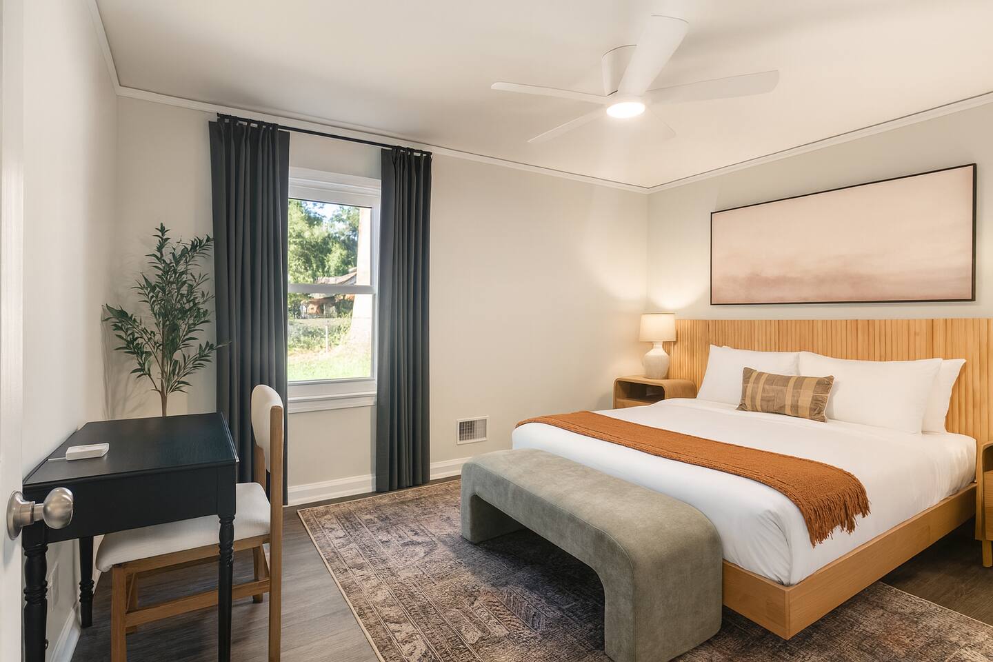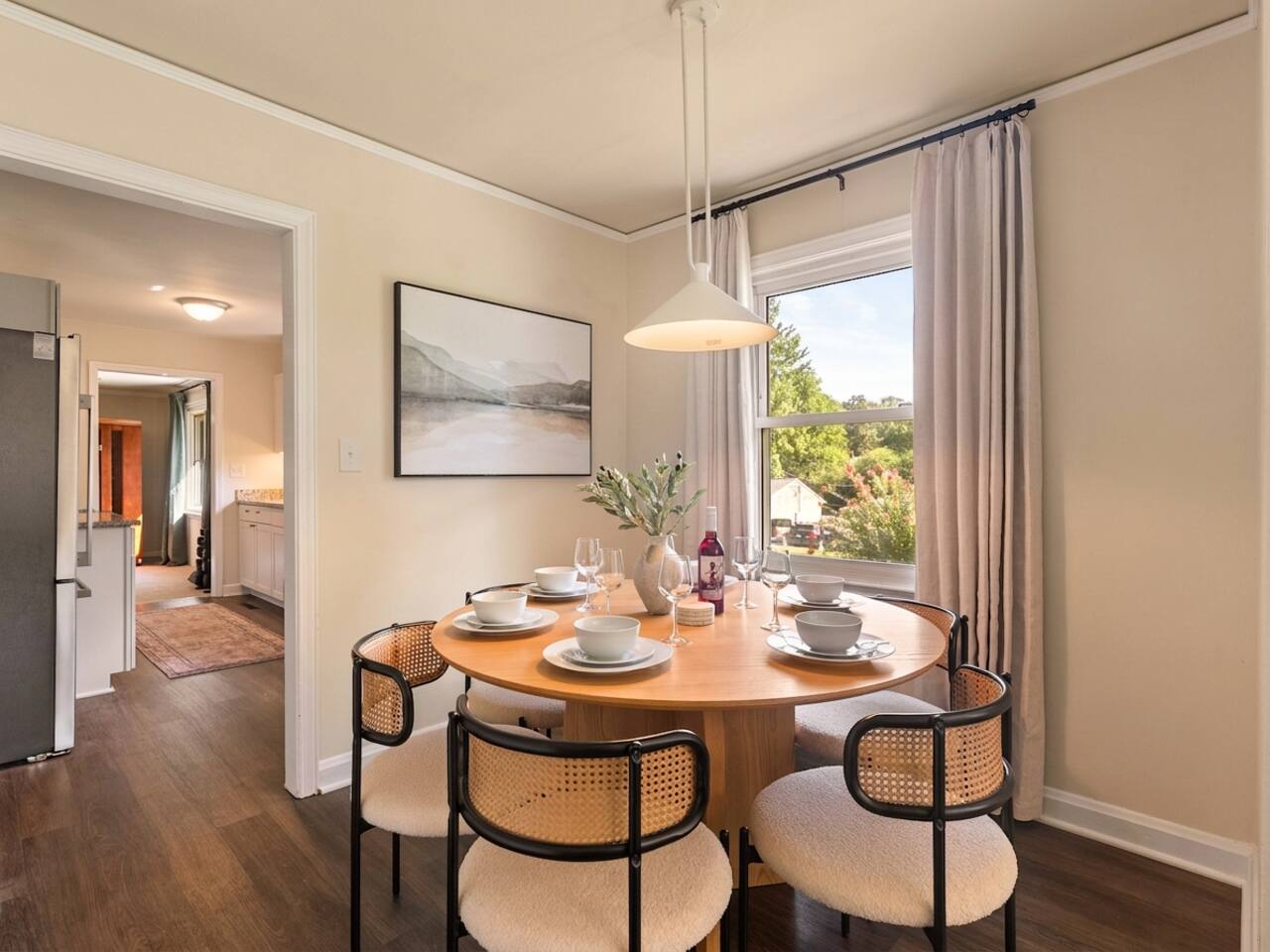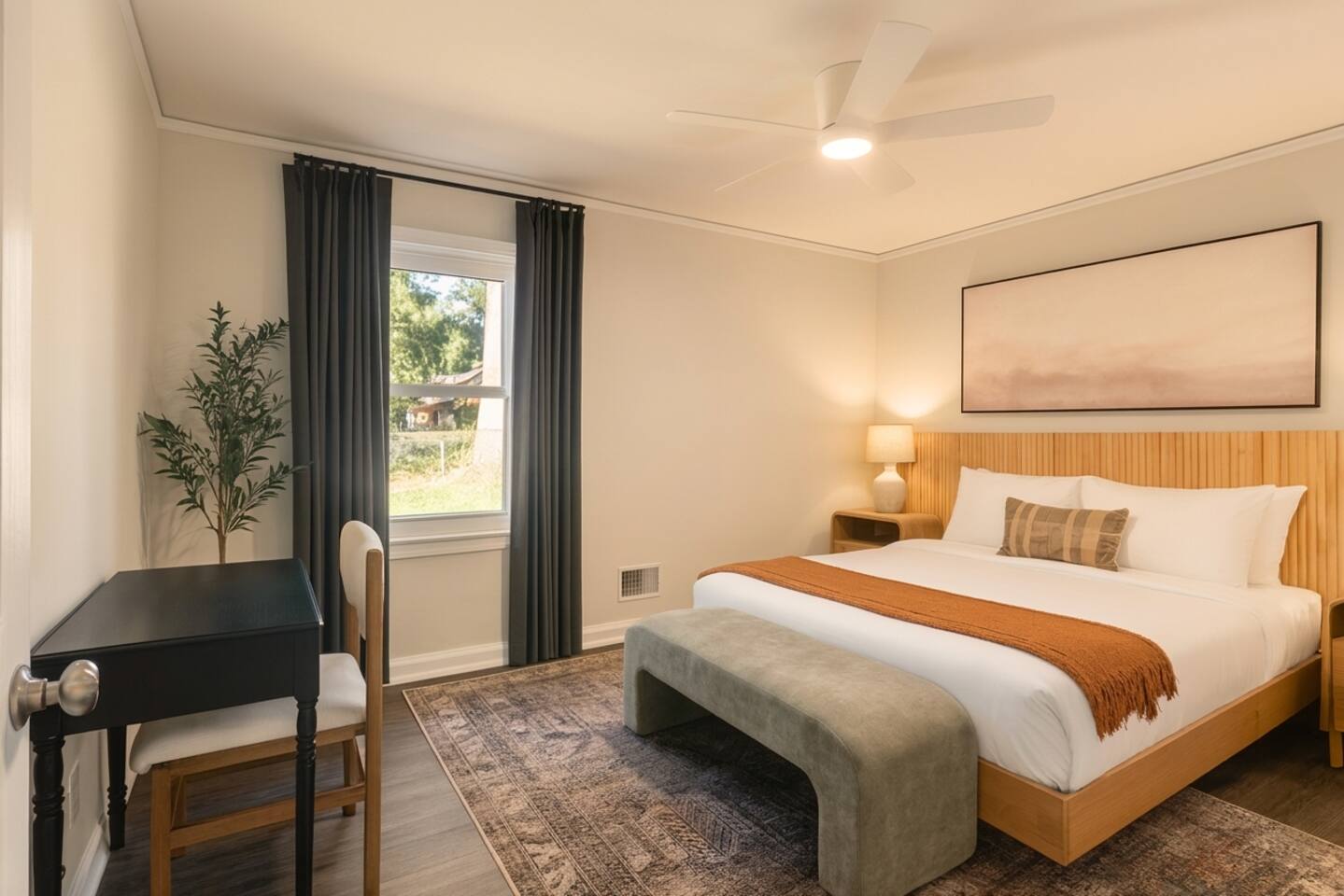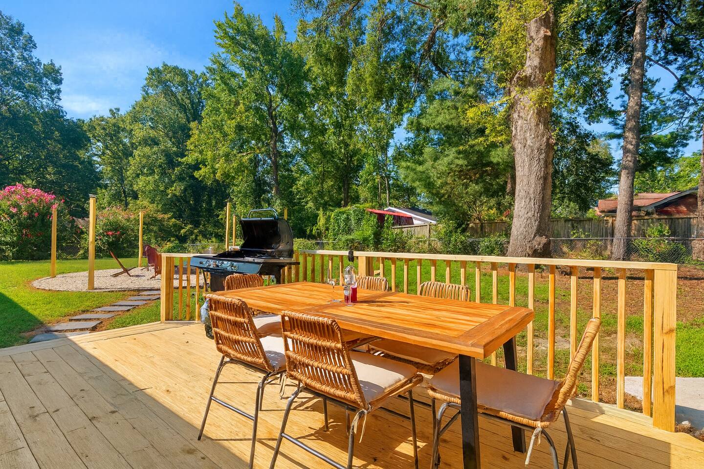 ✨ Highlights 🔥 Fire pit + string lights for s’mores and stories under the stars 🧖♀️ Private sauna & bubbling hot tub — your nightly reset 🎮 Game room with foosball, shuffleboard & arcade fun for all ages 🏋️♂️ Workout corner + yoga mats for balance and wellness 🧡 Fully stocked kitchen + coffee bar for family meals made easy 🚗 EV charger + parking for 4 vehicles 🏡 Peaceful residential street just minutes from Greenville’s favorite spots 🗺 Local Love You’re perfectly placed for adventure and ease: ☕ Taylors Mill (4 mi) – craft coffee, art studios & weekend markets 🏞 Paris Mountain State Park (5 mi) – family hikes & fall foliage 🌆 Downtown Greenville (6 mi) – restaurants, shops, the Liberty Bridge & the Swamp Rabbit Trail 🦓 Greenville Zoo (7 mi) – a favorite for the little explorers 🏞️ Caesars Head State Park in the Blue Ridge Mountains (35 mi) – the Southern tip of the Blue Ridge Mountains for family hikes and a breath of fresh air 🏢 Asheville, NC (63 mi) ⛳Golfer's Guide 🏌️The Preserve at Verdae (6 mi) – A scenic 18-hole, par-72 course by Willard Byrd, set in lush Carolina forest with hills and brooks 🏌️Paris Mountain Country Club (9 mi) – scenic foothills 🏌️Furman Golf Club (10mi) – voted #1 by the SC Golf Ratings Panel 🏌️Carolina Springs Golf Club (17 mi) – A semi‑private 18‑hole championship course open to public play 🏌️Southern Oaks Golf Course (18 mi) – the "hidden gem" We’ve thought through every detail — from plush linens and stocked coffee to a smart TV, EV charger, and family-friendly games. Ring cameras are installed at the front for peace of mind (none inside, ever). At Pinehurst Haus, it’s never just about where you stay…it’s about what you do together. Book your getaway, pack the marshmallows, and come make memories that will last long after checkout. 🛋 LIVING ROOM The living room is designed for comfort and relaxation, featuring stylish mid-century furniture and modern conveniences. Unwind on the comfortable sofa, catch up on your favorite shows on the smart TV, or enjoy some quality time with a board game or book. ✔ 1 cozy sofa that converts into a pullout bed, modern loveseat and 1 accent chair ✔ Smart TV with streaming access ✔ Large window for with serene outdoor views ✔ Board games for family fun or cozy nights in ✔ Modern wooden coffee table ✔ Ambient lighting 🕹 GAME ROOM & WORKOUT AREA: Kick back and unwind in the dedicated game room and workout area, designed for friendly competition and relaxation. ✔ Perfect for families and groups ✔ Arcade games for friendly competition ✔ Shuffle board & Foosball for friendly competition ✔ Weights ✔ Sauna ✔ Yoga mats ✔ Additional seating 🍽 KITCHEN The kitchen is fully equipped with all the essentials, making it the perfect spot to cook family meals and create lasting memories together. ✔ Oven, stove, microwave and dishwasher ✔ Refrigerator/freezer ✔ Keurig coffee maker ✔ Complimentary Keurig pods & creamer ✔ Toaster ✔ Electric kettle ✔ Stand alone ice maker ✔ Plates, bowls, mugs, glasses, silverware, pots and pans ✔ Ample counter space + storage ✔ Corner table seating to enjoy your coffee, seats 2 🍲 DINING AREA The dining room offers a cozy space for family meals, where you can gather around the table and enjoy quality time together. ✔ Dining table with seating for 6 guests 🛏 BEDROOMS All three bedrooms are tastefully decorated with modern furnishings and offer the perfect environment for a restful night’s sleep, including blackout curtains. 🛏 BEDROOM 1 (Bunk Room) ✔ Two Queen over Queen bunk beds ✔ Ceiling fan ✔ Dedicated office workspace ✔ Full-length mirror ✔ Folding luggage rack 🛏 BEDROOM 2 : ✔ One Queen-sized bed ✔ Ceiling fan ✔ Two nightstands with lamps ✔ Full-length mirror ✔ Folding luggage rack ✔ Iron & Ironing Board ✔ Vacuum 🛏 BEDROOM 3 ✔ One Queen-sized bed ✔ Ceiling fan ✔ Two nightstands with lamps ✔ Dedicated office workspace ✔ Full-length mirror ✔ Folding luggage rack 🚿 BATHROOMS & LAUNDRY The bathrooms are clean and modern, stocked with all the essentials you’ll need during your stay. ✔ BATHROOM 1 : Shower/tub combo, Vanity + mirror, Plush towels, Complimentary toiletries, and Hair dryer ✔ BATHROOM 2 + Laundry : Shower/tub combo, Vanity + mirror, Washer & Dryer, Plush towels, Complimentary toiletries, and Hair dryer 🌌 BACKYARD Unwind, reconnect, and make memories that last—your dream getaway starts right in our backyard. Soak in the hot tub, gather around the fire pit, fire up the BBQ, and lounge under the stars. ✔ Private deck with propane grill for cookouts ✔ Hot tub for ultimate relaxation ✔ Outdoor dining that seats 8 and extra outdoor seating ✔ Fire pit with string lights + seating ✔ Corn hole ✔ Spacious yard with open sky views 🚗 PARKING ✔ EV charger ready for your use Private parking is available on the premises, with space for up to five vehicles.
